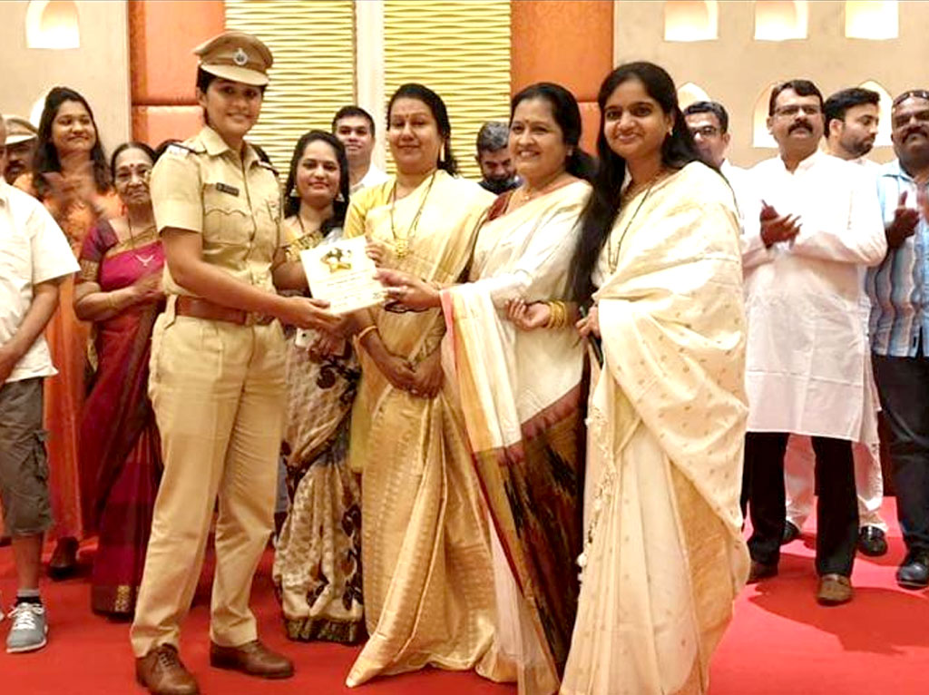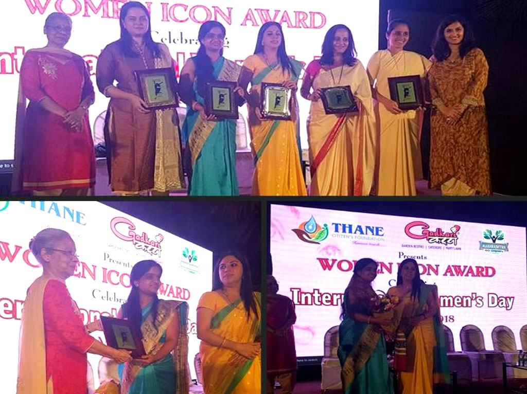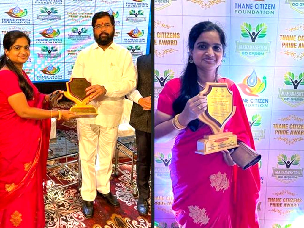 Diana receiving the THANE CITIZENS PRIDE award at the hands of Mr. Eknath Shine; Cabinet Minister for Urban development and Public works, Government of Maharashtra and the Mayor of Thane for her humanitarian work.