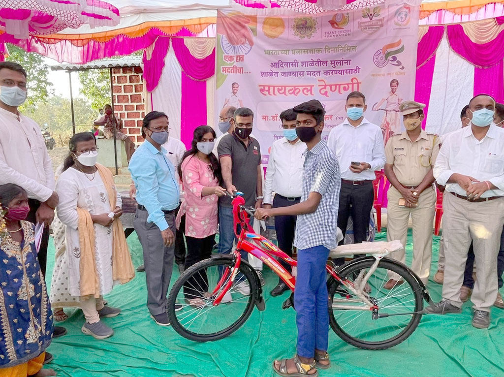Dr. Raheesh and Dr. Diana Celebrated the Republic day at Madali Tribal Village at Roha. Their NGO THANE CITIZENS FOUNDATION distributed free cycles to the kids who used to walk 8 km to school